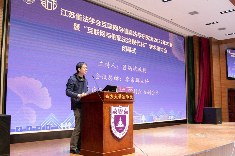 南京航空航天大学知识产权法研究中心主任、网络与人工智能法治研究院李宗辉研究员对本次年会进行了学术总结。李宗辉研究员将本次研讨主题概括为五个方面:一是网络平台法治研究,包括网络平台规制理论、电商平台交易规则、元宇宙平台建设等;二是个人信息保护研究,包括告知-同意规则的具体展开、个人信息的可交易性等;三是数据法治问题研究,包括司法信息公开带来的信息泄漏问题、面向流通的数据规范构造问题等;四是网络法律责任研究,包括智能医疗机器人侵权问题、网络犯罪防治问题等;五是比特币算力市场反垄断与数字法学视野下网络空间治理。他指出,本次研讨体现了理论界、司法界、产业界各位专家的真知灼见,既有高屋建瓴的制度构建,也有细致入微的规范解释,既有鞭辟入里的理论分析,也有切实可行的实践方案,既有立足当下的行为举措,也有面向未来的愿景规划,并期待各位专家学者在未来继续为互联网与信息法治研究贡献更大的力量。