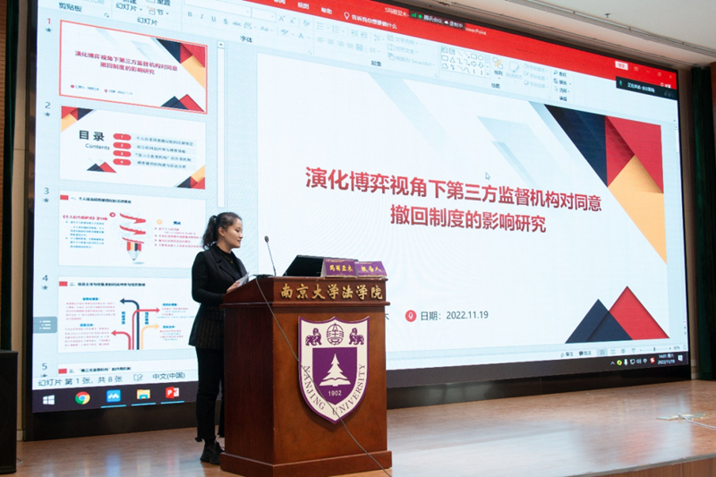 公司博士研究生玛丽亚木·艾斯凯尔以《演化博弈视角下第三方监督机构对同意撤回制度的影响研究》为题进行了发言,提出建立第三方监督机构能够在一定程度上消除信息主体与信息处理者之间的信息不对称问题,改变信息主体在与信息处理者博弈中的弱势地位,促进同意撤回权立法的有效实施。