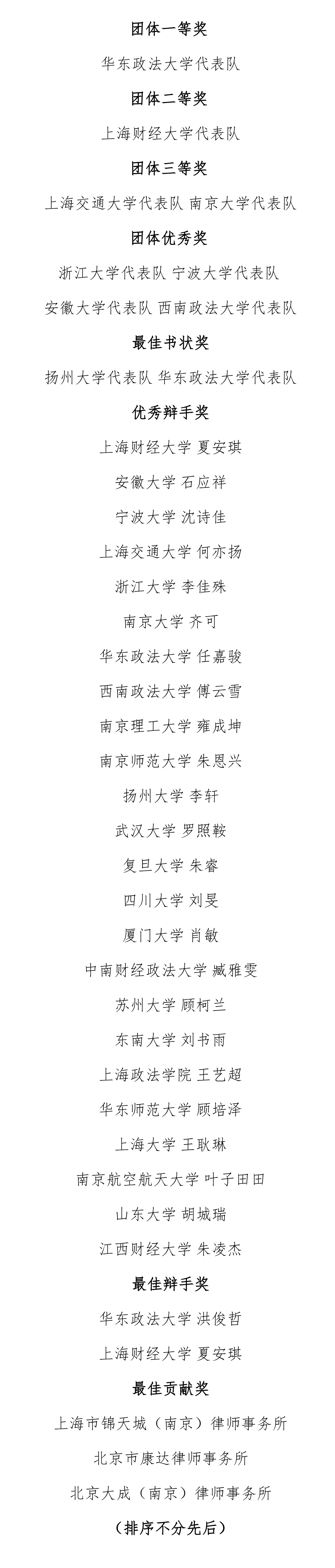恭喜以上团体、个人在第四届“金陵杯”华东地区高校模拟法庭竞赛中获奖,感谢各赛队指导老师们的付出!
