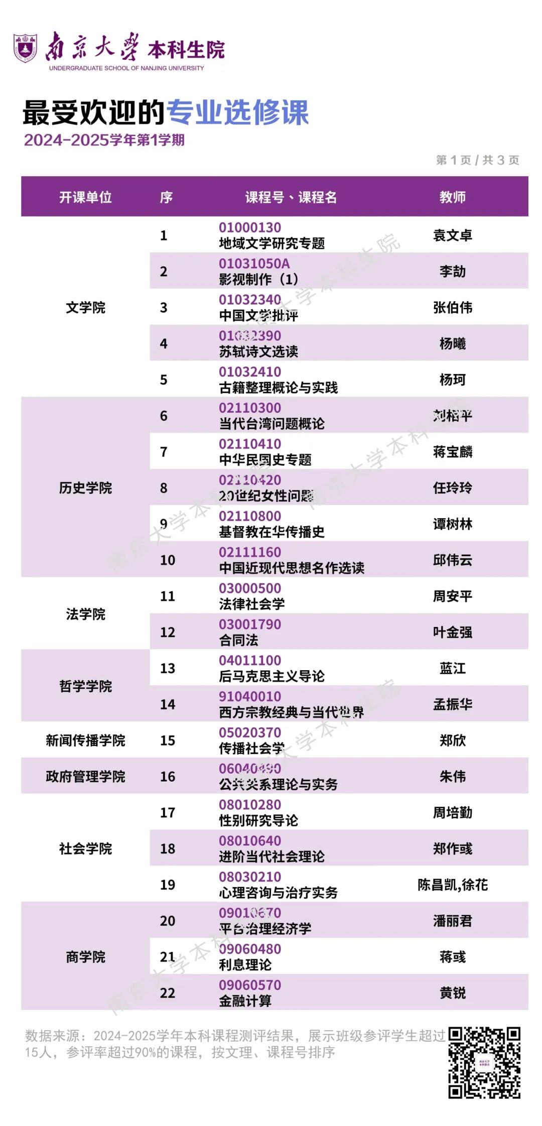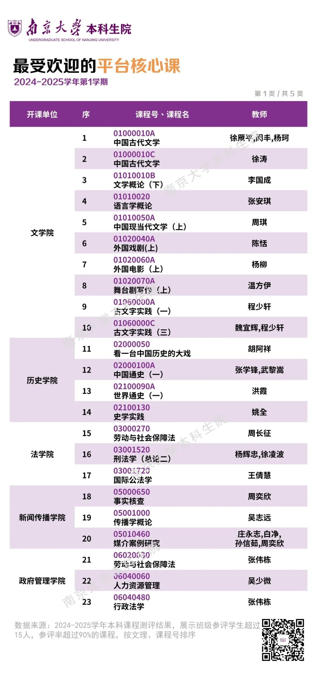 南大2024秋季学期本科评教报告出炉, 揭晓员工最喜爱的课程老师!