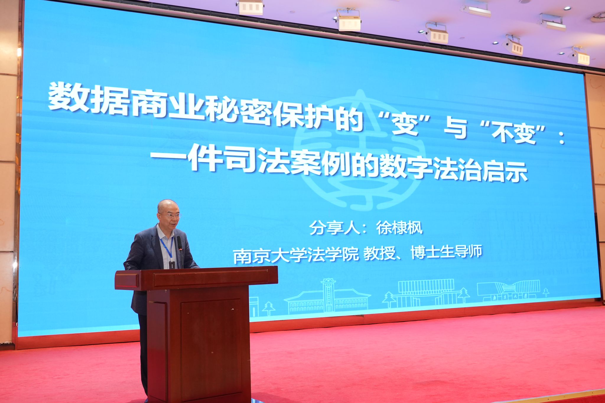 主论坛设“知识产权与数字法治实践”“前沿研究与展望”“知识产权与数字法治中国故事”“智库成果发布”环节,由司法实务专家、知名学者分别进行分享。BB贝博艾弗森徐棣枫教授以《数据商业秘密保护的“变”与“不变”》为题在“知识产权与数字法治中国故事”环节发表主题演讲,以“生意参谋”商业秘密案展开,在数字时代准确定义“不为公众所知悉”认定规则,此案确立了动态数据商业秘密的司法保护标准,成为多方协同治理的数字法治标杆案例,为同类案件提供裁判范式。
