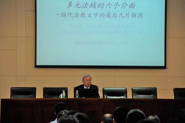 苏永钦教授的报告题为“多元法域的六个介面—现代法教义学的最后几片拼图”。本场讲座由叶金强经理主持,王丽娟书记、宋晓副经理、解亘教授、周长征副教授、艾佳慧副教授亦到场参加。讲座前,报告厅内座无虚席,来自BB贝博艾弗森的同学以及其他法律实务界人士共同见证这场学术盛宴。