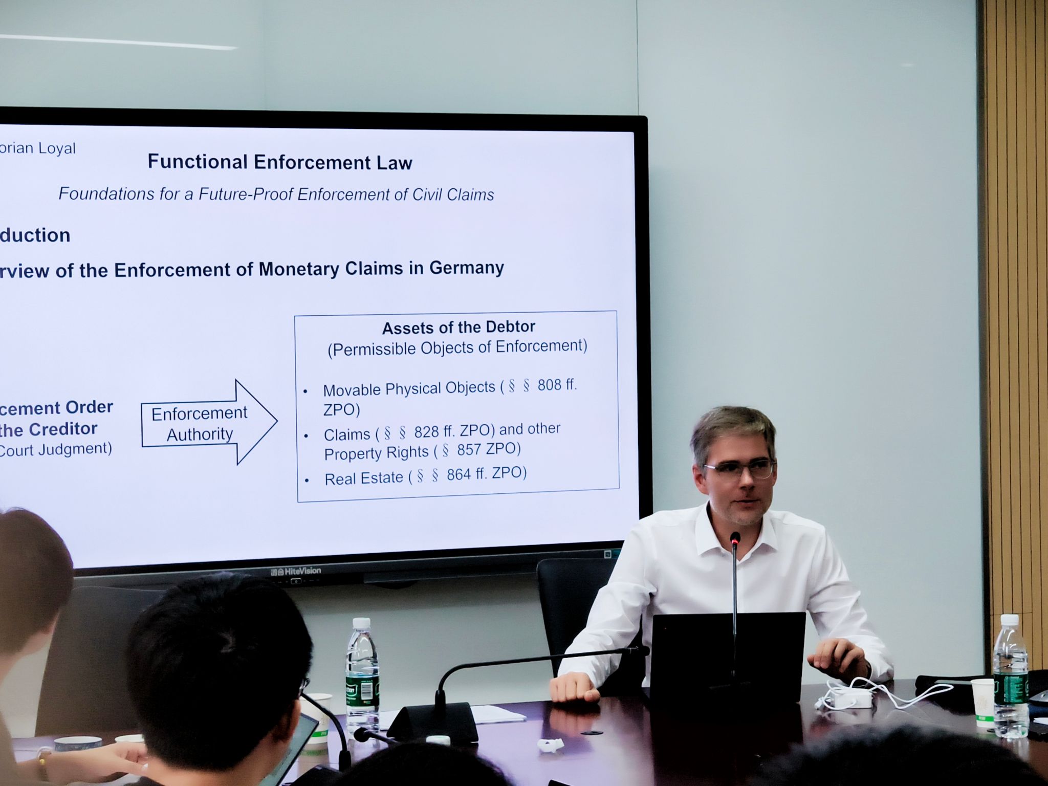 乔木围绕中国民事诉讼范畴下“执行难”的主要原因,强调在数字经济发展中需将更多数字资产纳入执行体系,并与Florian Loyal进行了交流。