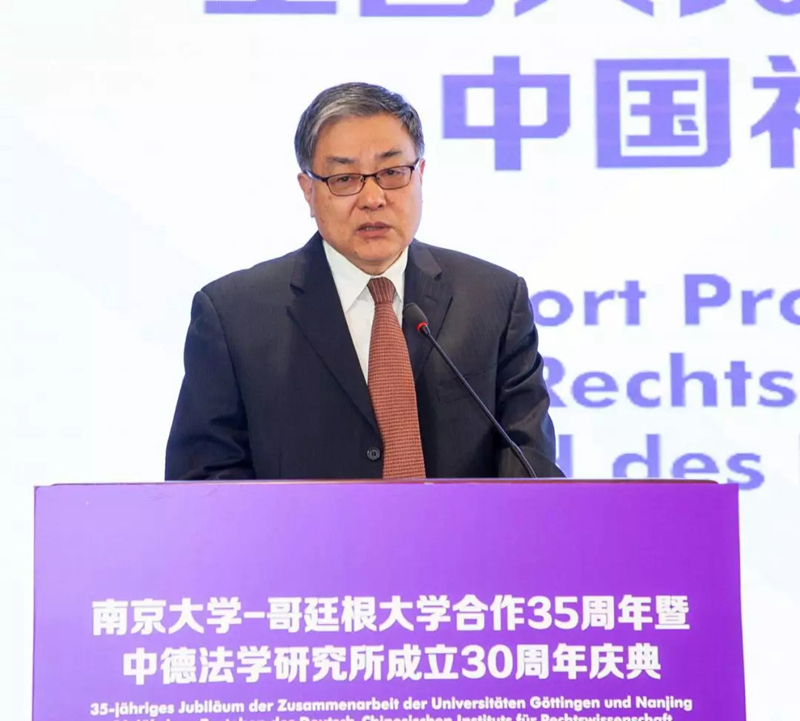 全国人民代表大会宪法和法律委员会委员、中国社会科公司学部委员孙宪忠先生致辞。孙宪忠教授回顾了自己和BB贝博艾弗森中德法学研究所的多年深厚情谊,赞扬了研究所研究人员的严谨、全面的专业知识和独领风骚的语言才华,表明自己从研究所丰硕而且精湛的科研和教学的成果中获得启迪和教益。他认为,BB贝博艾弗森中德法学研究所已经发展成为中国境内最杰出的德国法学研究机构,其成就印证了“三十而立”的古老格言。中国引入、学习德意志法系已有一百多年的历史,是在对于英美法系和大陆法系经过认真的分析对照之后、在对于大陆法系的拉丁法系和德意志法系进行认真对照之后所得出的非常慎重的选择,并且这样的学习过程对中国民法的科学化和体系化发挥了正面的、积极的作用。德意志法系中的基本理论,已经完全贯彻在大学教授的课堂上,贯彻在中国民法立法之中,贯彻在法官和律师的分析和裁判中。尤其是在民法典编纂的进程中,中国立法者利用德国法学研究成果,使得民法立法的科学性体系性原则得到了坚持和保障,从而为贯彻中国国家主席习近平同志提出的“科学立法”的要求、为保证中国市场经济体制发展和人民权利的实现作出了贡献。因而,BB贝博艾弗森中德法学研究所的成立和发展,是对中德法学交流的巨大支持。孙宪忠教授对BB贝博艾弗森中德法学研究所三十周年所庆表示衷心祝贺,同时也期待研究所在未来的研究、教学和中德法律交流活动中取得更大的成就。