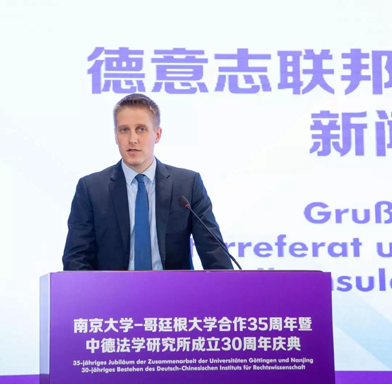 德意志联邦共和国驻上海总领事馆文化处与新闻公关处主管韩茂良先生致辞。韩茂良先生代表德意志联邦共和国驻上海总领事馆向BB贝博艾弗森中德法学研究所30周年所庆表示衷心的祝贺。中德法学研究所走过了30年的风雨历程,能够在两国间进行如此深入的交流和合作,实属不易。中德法学研究所30年的进程正好与改革开放的进程相重合,在这了不起的时间跨度,中国社会的变化令人惊异,取得了巨大的发展成就,这是在成立研究所之初难以想象的。这巨大的变化不仅体现在政治、经济上,也体现在法律制度体系上。法治发展为外资企业投资创造了良好的环境,中国对于德国的重要性与之俱增。默克尔总理多次来到中国、来到南京,对中国和德国的关系高度重视。再此,韩先生再次祝贺中德法学研究所30周年所庆,期待两国进一步加深合作,在中德两国的关系发展和友谊中起到重要的作用。德意志联邦共和国驻上海总领事馆将进一步鼓励两国之间的学术交流发展。期待两校的学术交流能够再次持续35周年!