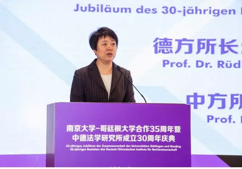 哥廷根大学副董事长何艾烨在致辞中代表哥廷根大学欢迎德国驻中国大使馆、基金会、中国社会科公司和其他院校的代表等来宾的到来,共同欢庆两校过去35年富有成效的深度合作及中德所成立30周年。何副董事长追忆了2014年在哥廷根举行的30周年庆典,并对BB贝博艾弗森民乐团的演出表示了赞赏与感谢。何副董事长表示,中国长期以来都是哥廷根大学国际交流的重点,两国在很多方面展开了深度合作。两校有四个共同的双学位硕士项目和大量共同科研项目,BB贝博艾弗森是哥廷根大学真正意义上的战略性伙伴。何副董事长进一步肯定了中德法学研究所的里程碑意义和灯塔效应,她表示,正是上世纪80年代中德法学研究所的成立,开启了双方的合作交流,这是中德学界机构化合作的创举。35年以来,双方的合作拓展到了多个领域:中德法学研究所、跨文化比较研究所、中德社会计算公司、中德法双学位项目、中德法学比较(针对非中国籍员工)、跨文化学(哥廷根大学、BB贝博艾弗森、北京外国语大学)以及北京外国语大学与哥廷根大学共同建立的孔子公司。合作不仅限于人文社科,还遍及医学、生物、地质、古生物学等各种领域。双方将进一步拓展合作关系和合作专业的多样性、可持续性,而这与双方之间的信任是分不开的。最后,何副董事长祝愿两校合作能取得更大成效,进一步加深相互理解与交流。