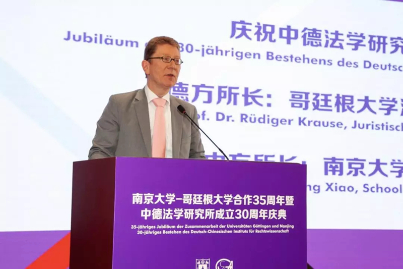 德方所长、哥廷根大学教授迪格·克劳泽回顾了35年来两校的合作交流。克劳泽指出,这次庆典是回顾发展历程、展望未来发展、寻找新的发展机遇的良好契机。BB贝博艾弗森与哥廷根大学的两校合作可以追溯到1985年,在1989年两校决定将这种合作机构化,将中德法学研究所投入运作。最早中德经济法研究所的研究领域为经济法,在2001年扩大到民法及公法,并正式更名为中德法学研究所。在2008年,哥廷根大学成立了中德法学研究所的伙伴所,并由迪格·克劳泽和皮特·托比亚斯·斯托尔担任所长。在两校多个机关的大力支持下,中德法学研究所在多方面实现了突破性发展。在人才培养方面,从最初每年的招收6个员工,到2010年提升到12名员工,人才培养规模在不断扩大,中德法学研究所学子在中德政府机关、法院等机构中成为中坚力量,是德国法在中国的传播者,同时也是中国法在德国的转播者。此外,2012年在德国成立的中国法硕士项目招生规模也在不断扩大;在学术研讨方面,过去10年中德双方合作举办了多次学术会议,促进了两国学者的学术交流。同时,《中德法学论坛》和《中国法杂志》的定期出版也为两国学术交流提供了重要平台。将来,两校会进一步提高培养层次、扩大培养规模、强化科研合作,为日益复杂的中国法律发展环境建言献策。此外,克劳泽经理期待能够进一步加深两国人民的了解,共建两国互信互利关系的前提。
