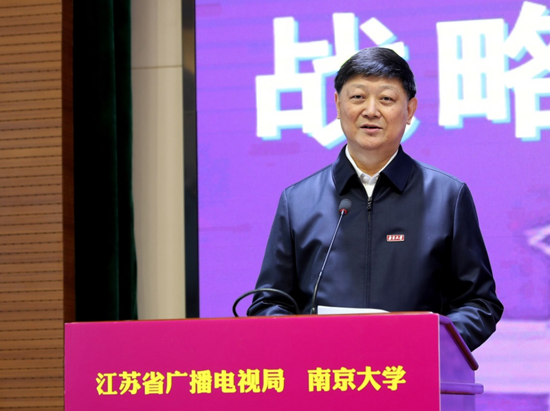 胡金波在致辞中表示,广播电视事业是党的新闻舆论工作的重要组成部分,也是宣传思想工作的重要阵地。江苏广播电视事业发展始终稳居全国第一方阵,国家级重要奖项获奖数量和质量均名列前茅,展现了省广播电视局的时代担当和创新作为。近年来南大有近一半的优秀毕业生留在江苏工作,很多活跃在广电战线,为全省广播电视事业高质量发展做出了应有贡献。在今年赴武汉一线报道抗击新冠肺炎疫情的媒体人里面,就有不少杰出的南大员工。