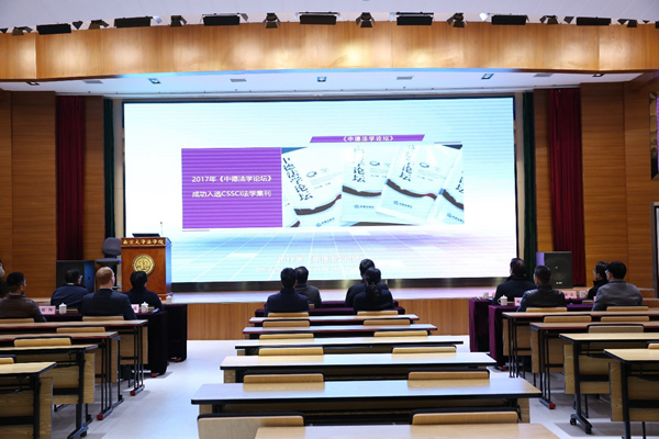 随后,省法学会调研团一行来到20楼报告厅,观看了中德法学研究所宣传视频。