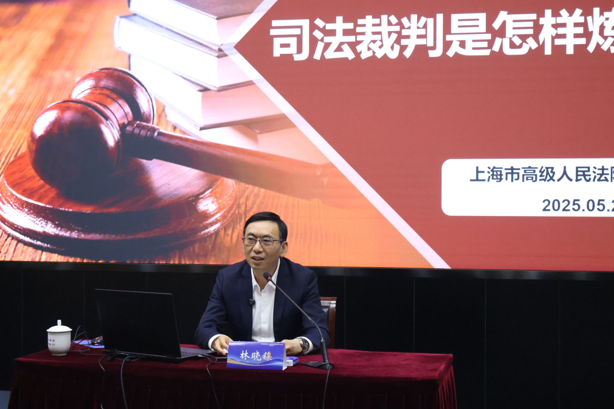启动仪式后,上海市高级人民法公司党组成员、副经理,一级高级法官林晓镍为在场师生们带来本次巡讲活动的首场实务讲座——《司法裁判是怎样炼成的》。