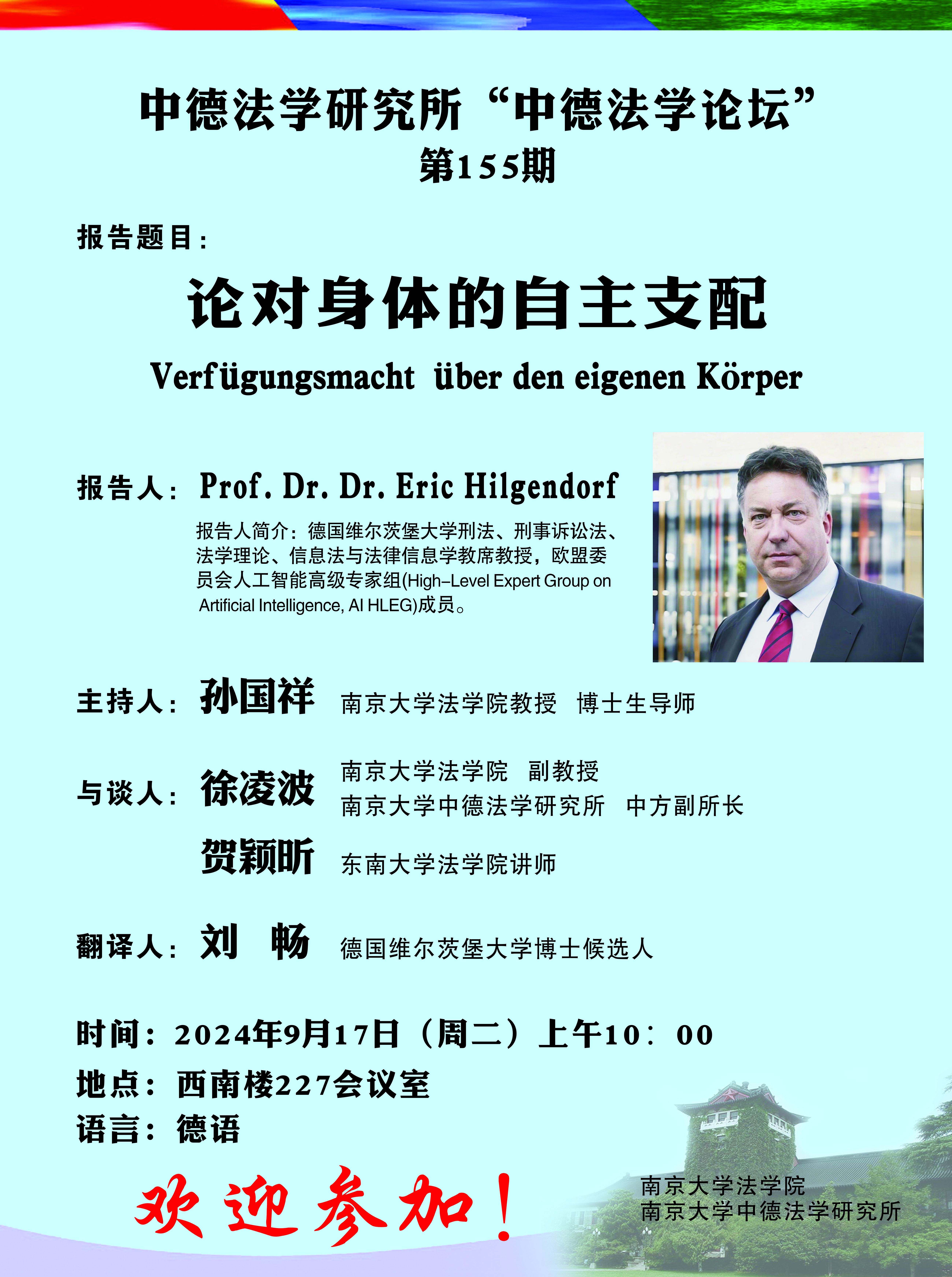 中德法学研究所“中德法学论坛” 第155期海报