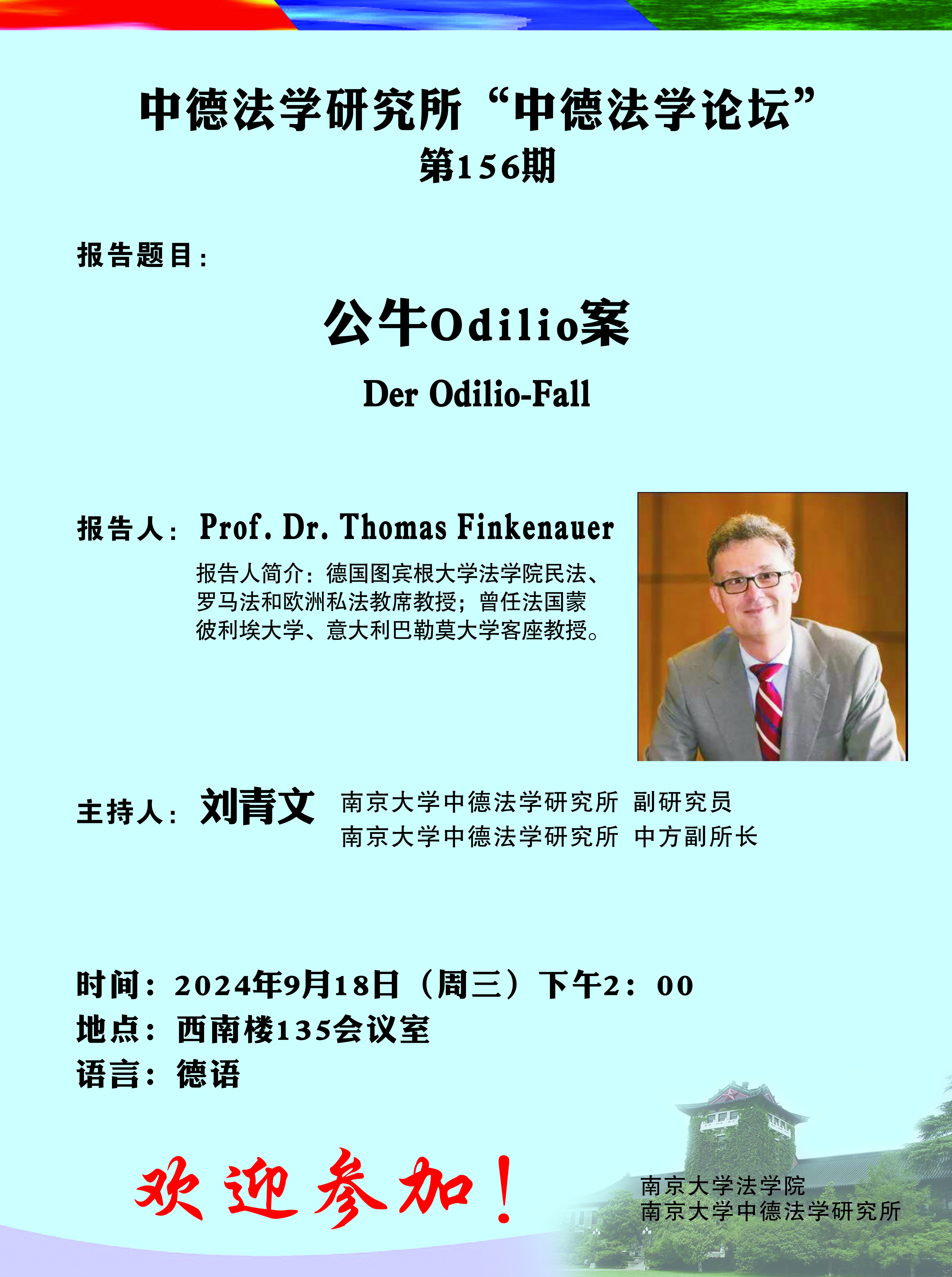 中德法学研究所“中德法学论坛” 第156期海报