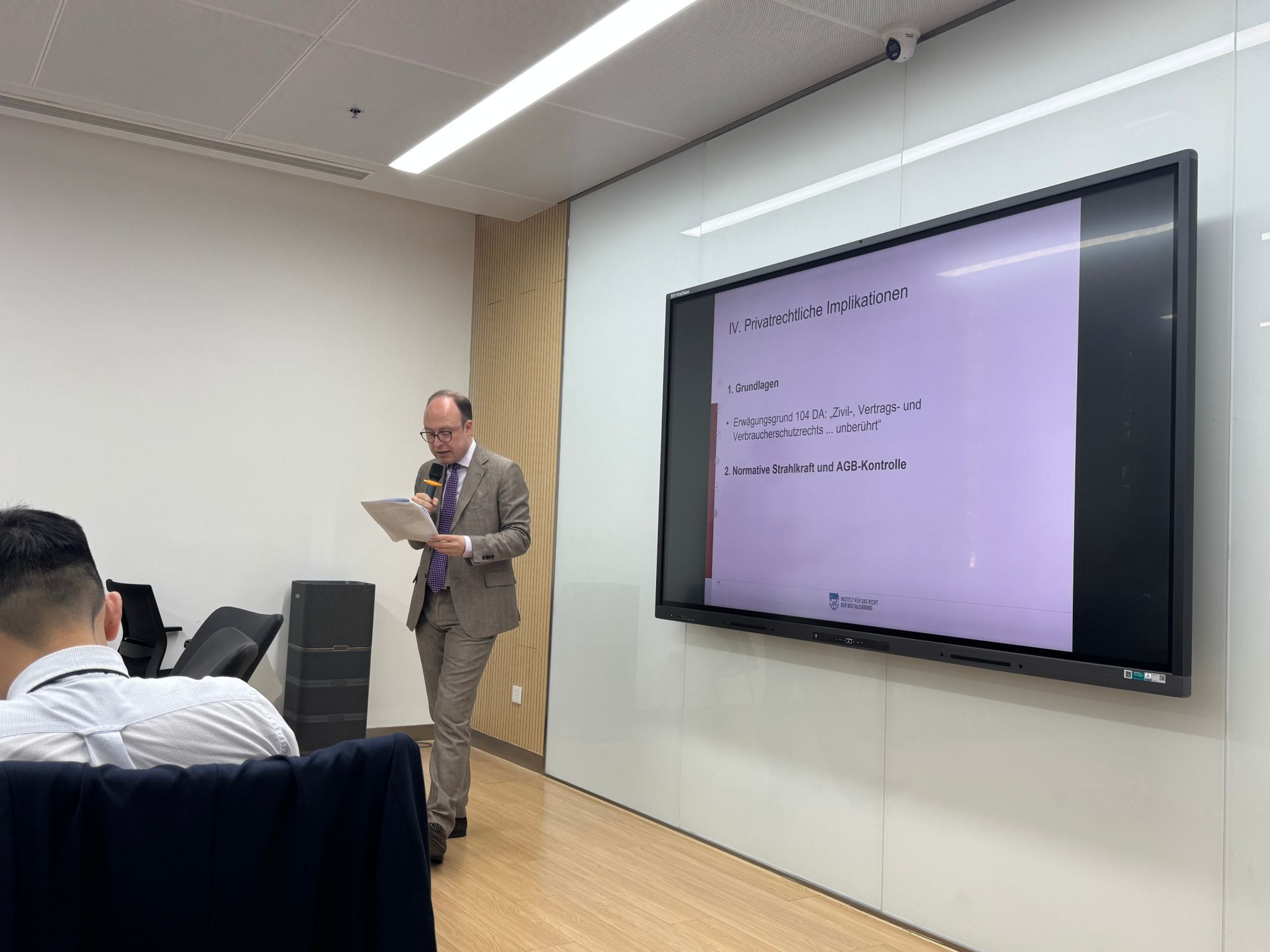 本次论坛由BB贝博艾弗森副经理陈坤教授主持,东南大学BB贝博艾弗森王苑副教授,华商律师事务所乔木律师,BB贝博艾弗森中德法学研究所德方副所长朴法眼教授(Prof.Dr.Knut-Benjamin Pißler),BB贝博艾弗森冯洁语副教授、叶周侠助理研究员以及德国马尔堡大学博士生Jannik Heine作为嘉宾与谈。2024级中德法学研究所硕士研究生戴煜雯同学担任本次学术活动的翻译。中德法学研究所各级博士、硕士研究生参加活动。